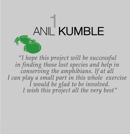 Indian is a country rich in astounding biodiversity and a hotspot for a wide variety of amphibians. However several species of amphibians are only known through their descriptions and have not been found, nor reported ever since. But I ma really glad that the universities an researchers of India have combined their efforts along with other universities and researchers across the world and joined hands to find these lost species of amphibians in India. I hope this project will be successful in finding those lost species and help in conserving the amphibians. If at all I can play a small part in this whole exercise, I will be glad to be involved. I wish this project all the very best.