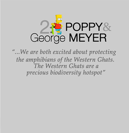 Hi, I am George Meyer, long time writer for the Simpsons and this is my daughter Poppy. We are both excited about protecting the amphibians of the Western Ghats. The Western Ghats are a precious biodiversity hotspot. So lets not lose this valuable habitat or it would be a big doooo.